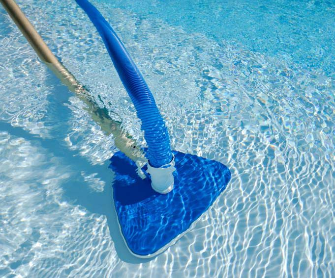 - بعد ذلك يتم استخدام المكنسة، من أجل شفط الأتربة التي توجد في قاع المسبح.